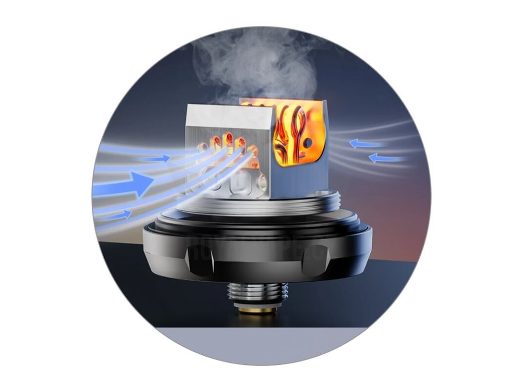 Pokud jste příznivci DL vapingu, tak právě Arbiter 2 splní všechny vaše požadavky. Převratnou novinkou je potom přítomnost bočních panelů u základny, skrze které přichází vzduch přímo ke spirálkám a ofukuje je z boku. Tento systém je nejen precizně navržený pro zisk obrovského množství páry, ale zejména pro výraznou a plnou chuť.