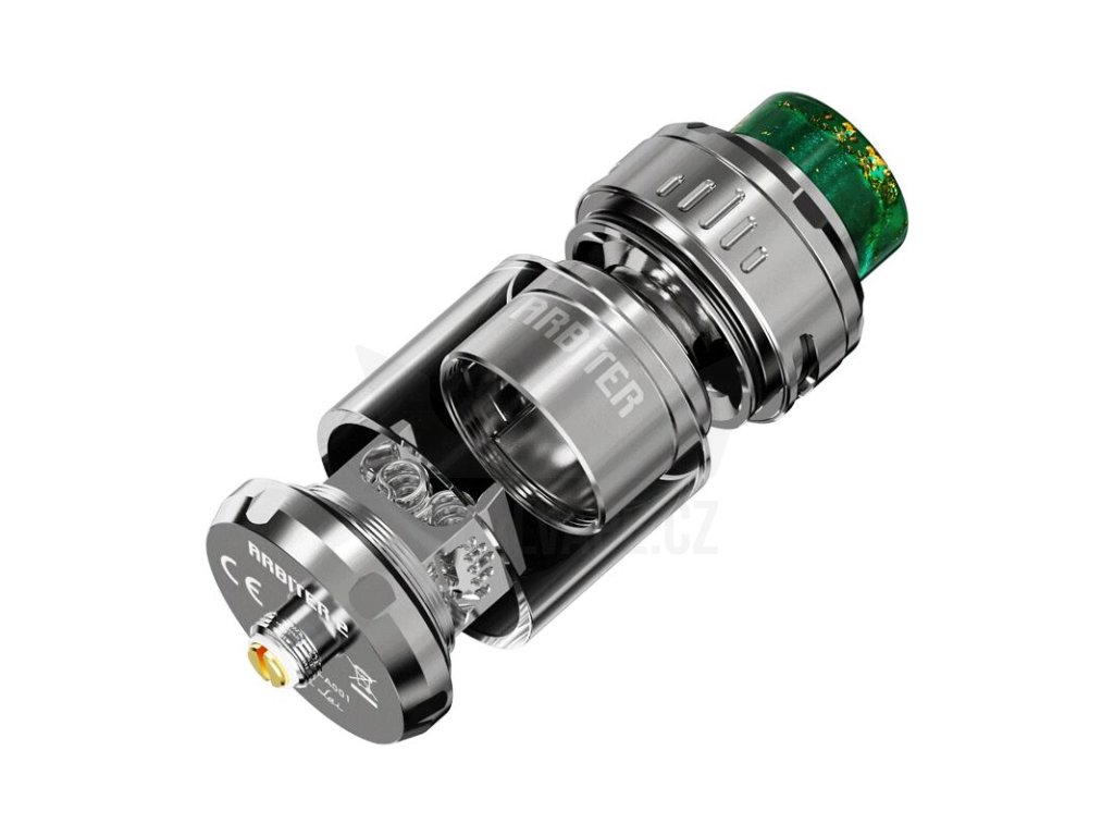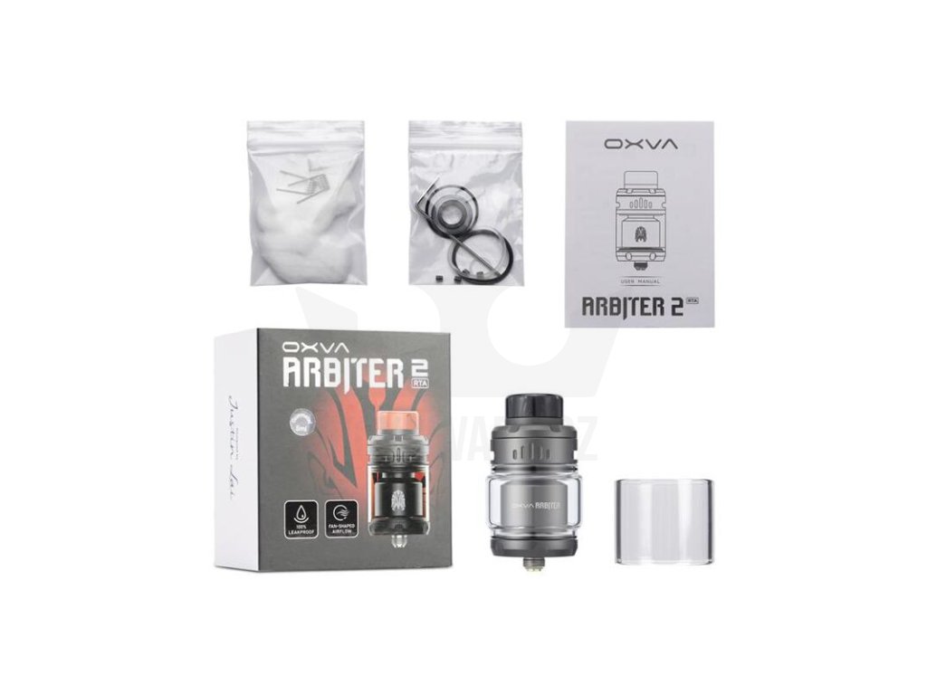 Arbiter je zpět a ve velkém stylu. Výrobce OXVA představuje clearomizér Arbiter 2 RTA, jedná se o druhou generaci populárního DL atomizéru Arbiter, přináší celou řadu výhod pro každodenní využití v čele s kompaktnějšími rozměry pro kompatibilitu s co největším množstvím modů na trhu. Ve spodní části atomizéru se nachází závit typu 510 s pozlaceným centrpinem. Délka atomizéru činí jen 52 mm, průměr potom činí 26 mm. V TPD verzi nabídne atomizér speciální matné PCTG sklíčko a celkový objem 2ml. Pro plnění potom poslouží oblíbený vrchní systém plnění.