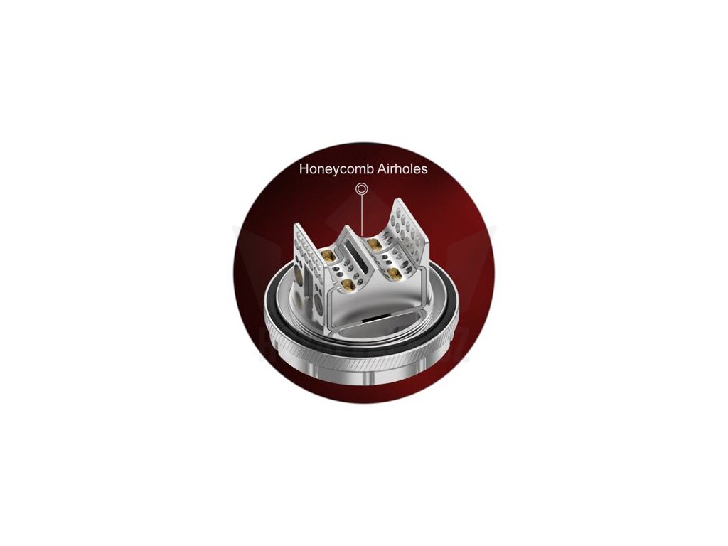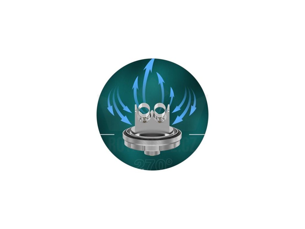 Poté, co vzduch vstoupí do atomizéru skrz vrchní airflow systém, proudí směrem k základně. Do základny je přiváděn ze spodní části, odkud také ofukuje samotné spirálky. Revoluční systém 270° Honeycomb, kterým je opatřena samotná základna, je skutečně dechberoucí. Atomizér si naprosto hravě poradí s kterýmkoliv e-liquidem. Ať už preferujete jednosložkové náplně, nebo složité a komplexní ovocné a dezertové směsi, všechny chutě vykreslí naprosto dokonale.