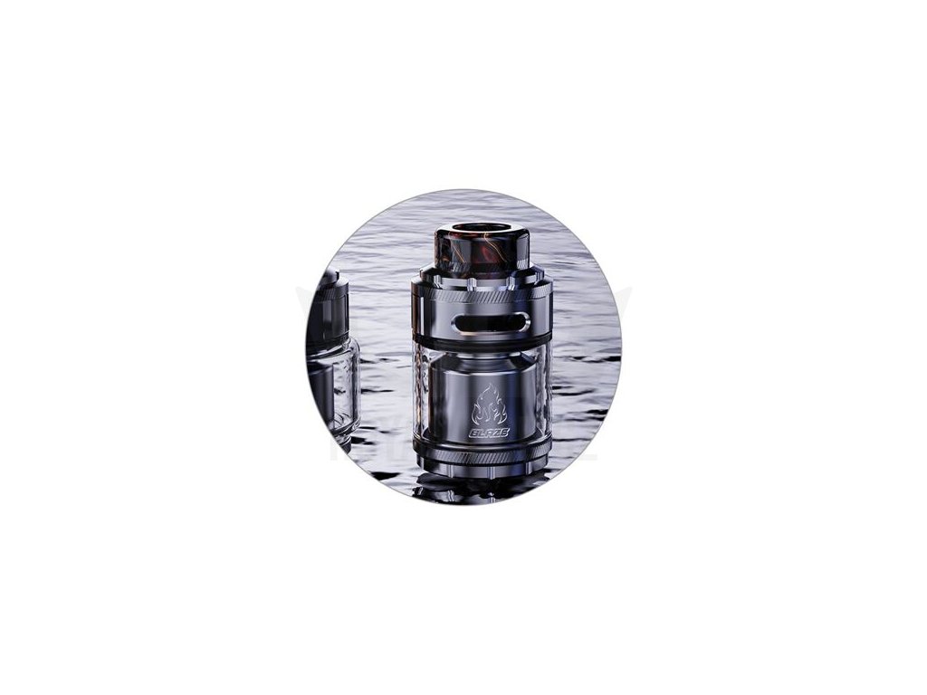 Základní objem tanku činí 2 ml, tuto kapacitu si však budete moci pohodlně navýšit až na 5,5 ml osazením většího pyrexového těla z balení. Mimo obrovskou kapacitu disponuje atomizér také oblíbeným systémem vrchního doplňování. V těle se potom nachází inovativní "WOW" základna pro instalaci dvou spirálek souběžně. Tato základna zároveň nabídne unikátní systém přívodu vzduchu s názvem 270° Honeycomb. Vzduch je přiváděn řadou menších otvorů pod spirálky, odkud poté proudí směrem nahoru do komory. Výsledná chuť je doslova ohromující. Samotnou tuhost potahu si poté můžete ještě regulovat pomocí vrchního systému airflow. THC Blaze RTA je ve všech směrech promyšlený DL atomizér, se kterým se nebudete ani na vteřinu nudit. Zaručeně splní požadavky i těch nejnáročnějších příznivců přímého potahování do plic.
