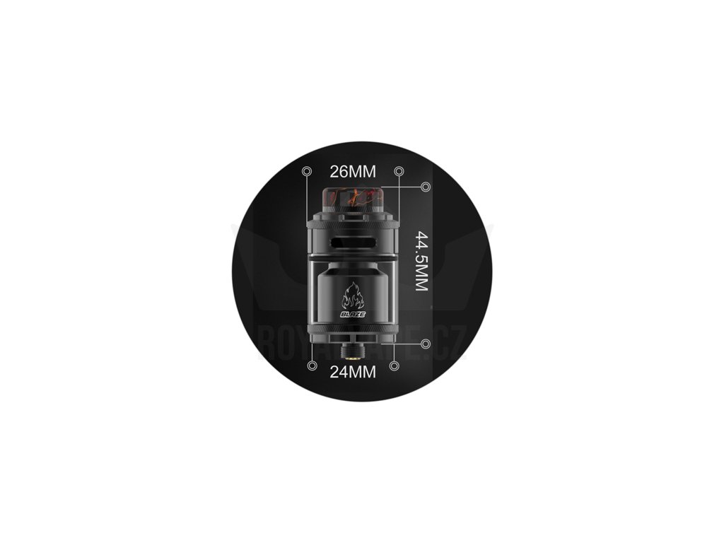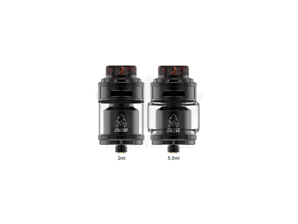 Základní objem tanku činí 2 ml, tuto kapacitu si však budete moci pohodlně navýšit až na 5,5 ml osazením většího pyrexového těla z balení. Mimo obrovskou kapacitu disponuje atomizér také oblíbeným systémem vrchního doplňování. V těle se potom nachází inovativní "WOW" základna pro instalaci dvou spirálek souběžně. Tato základna zároveň nabídne unikátní systém přívodu vzduchu s názvem 270° Honeycomb. Vzduch je přiváděn řadou menších otvorů pod spirálky, odkud poté proudí směrem nahoru do komory. Výsledná chuť je doslova ohromující. Samotnou tuhost potahu si poté můžete ještě regulovat pomocí vrchního systému airflow. THC Blaze RTA je ve všech směrech promyšlený DL atomizér, se kterým se nebudete ani na vteřinu nudit. Zaručeně splní požadavky i těch nejnáročnějších příznivců přímého potahování do plic.
