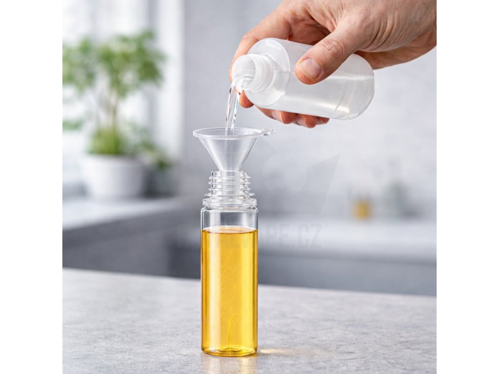 Trychtýř pomůže i v případech, kdy u některých bází chybí kapátko, problém přelití do menší lahvičky je tím tedy vyřešen. Trychtýř nabízíme v transparentním provedení. Je vyroben z polypropylenu (PP).