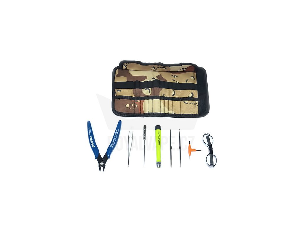 Vpdam přichází s nabídkou praktického setu nářadí, se kterým se výroba, ale následně i samotná instalace vlastnoručně vyrobených spirálek stane naprostou rutinou. K instalaci vlastní spirály, například někde na cestách, Vám postačí už jen přibalit své oblíbené spirálky, absorpční vatu a svou RBA, RDA, či RTA hlavu, a můžete vyrazit v podstatě kamkoliv. Vše potřebné k tomuto úkonu totiž naleznete právě v tomto povedeném setu nářadí. Od štípacích a klasických kleští, přes nepostradatelnou pinzetu, šroubováček, nůžkami na stříhání vaty, nástroje k výrobě spirálek, zkrátka vše potřebné k instalaci připravené spirály. SET nářadí Vape Tool totiž obsahuje vše potřebné.