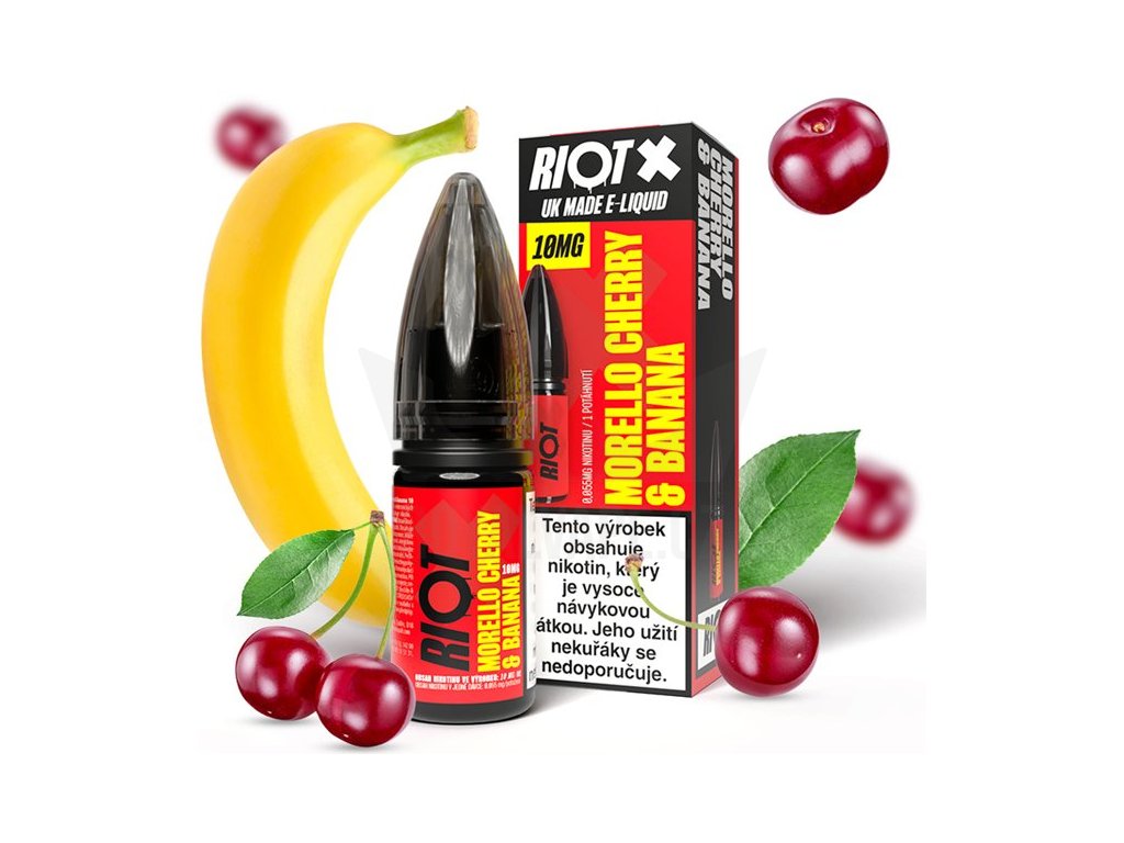 Liquid RIOT X Salt Morello Cherry & Banana (Kyselá višeň a banán) 10ml-10mg Kyselá višeň a banán