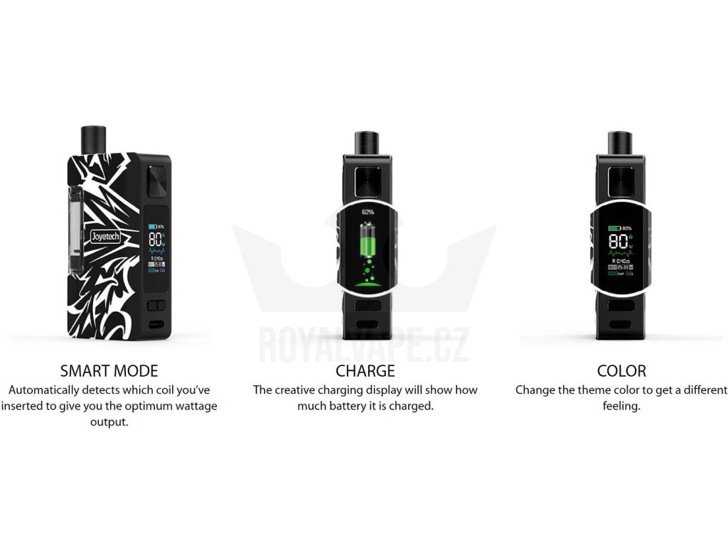 Kompaktní Pod Grip s výkonem až 80W, cartridge s objemem až 2,6ml, OELD displej, na baterii 18650, USB-C nabíjení, kompatibilní s Joyetech EZ atomizéry.