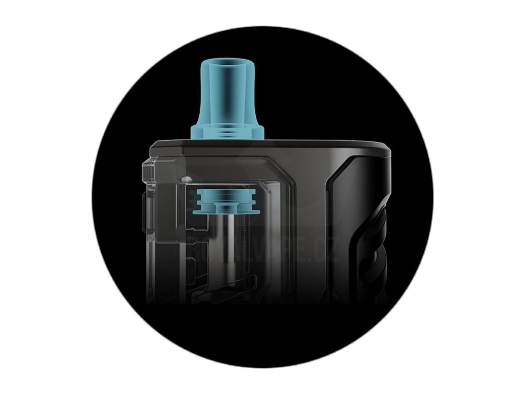 Lost Vape Centaurus G80 nabídne podporu cartridgí UB AIO na vyměnitelné žhavící hlavy. Cartridge disponuje obrovským objemem 5ml a nabídne také praktické a jednoduché boční plnění. V její spodní části potom najdete otočný kroužek pro regulaci airflow.