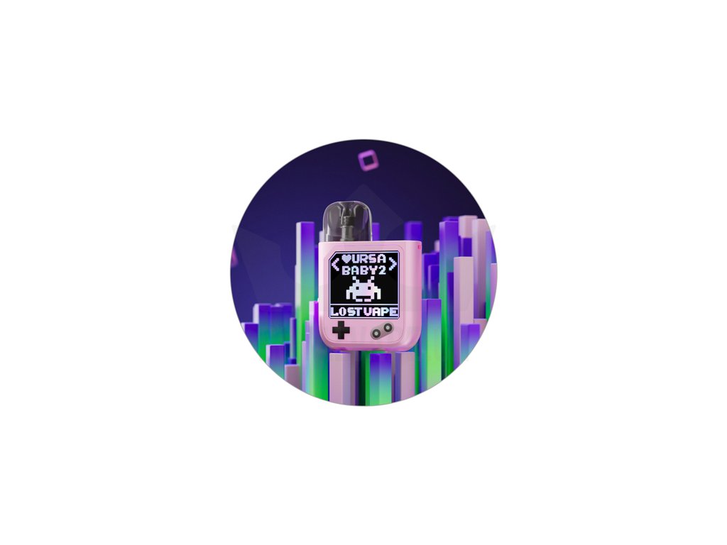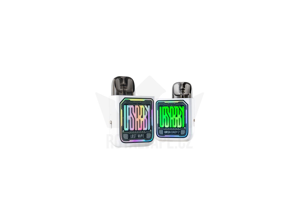 Druhá generace kompaktního pod systému Ursa Baby od výrobce Lost Vape přichází s odvážným a netradičním designem, solidní kapacitou baterie a řadou užitečných prvků pro každodenní vapování. Lost Vape Ursa Baby 2 Pod Kit zaujme na první pohled svým pestrobarevným zpracováním a stylovým bočním panelem s podsvícením. Tento neotřelý design přichází hned v několika barevných variantách a motivech, z nichž si zaručeně vybere každý. Mimo originální vzhled nabídne Baby 2 také kompaktní rozměry, které se zastavily na 49 x 17.5 x 69 mm. Snadno ji schováte do dlaně a během vapování ji ani neucítíte v ruce, její hmotnost činí pouhých 48,5 g. Tělo disponuje integrovanou baterií s kapacitou 900 mAh, můžete se tak těšit na dlouhou výdrž a dlouhé hodiny pohodového vapování. V případě potřeby můžete dobíjet pomocí portu USB-C.