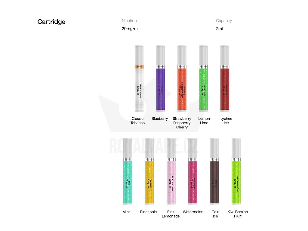 - 11 dostupných předplněných příchutí v 2ml cartridgích