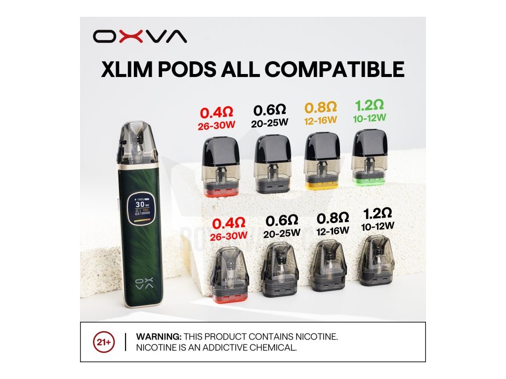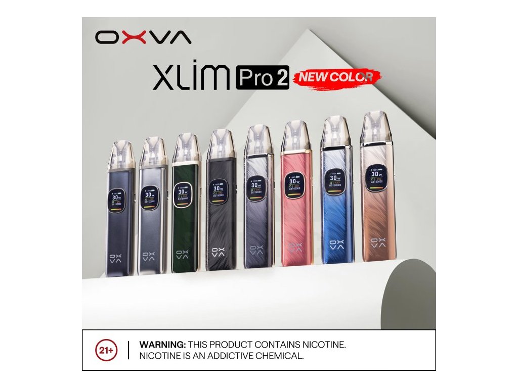 Elektronická cigareta OXVA Xlim Pro byla vyhlášena nejoblíbenějším POD zařízením mezi vapery za období 2023 a 2024. Nyní přichází výrobce s druhou řadou, která si pro Vás přichystala mnoho novinek. Elegantní a čistý designe těla baterie zdobí 0,56 palcový barevný Ultra-HD displej, který poskytuje vynikající přehled o nastavení všech hodnot. Vestavěný monočlánek nabízí vyšší kapacitu baterie 1300mAh, USB-C port s 2A nabíjením a výkonem až 30W. Na boční straně baterie je umístěno regulační tlačítko pro přívod vzduchu, díky kterému si jednoduše nastavíte RDL nebo MTL režim vapování. V obsahu balení najdete cartridge Xlim V3 s horním plněním - není potřeba vyndavat cartridge z těla baterie při plnění liquidem. Cartridge V3 jsou plně kompatibilní s verzí V2.