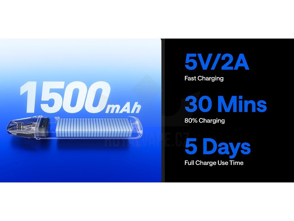 Rychlé nabíjeníModerní USB-C port s podporou rychlonabíjení 5V/2A dokáže nabít XLIM Pro 3 na 80% kapacity za pouhých 30 minut - připraveno ještě před koncem vaší schůzky. Kompletní nabití trvá přibližně 45-60 minut. Během nabíjení je možné zařízení dále používat díky pass-through funkci pro nepřerušené vapování. |