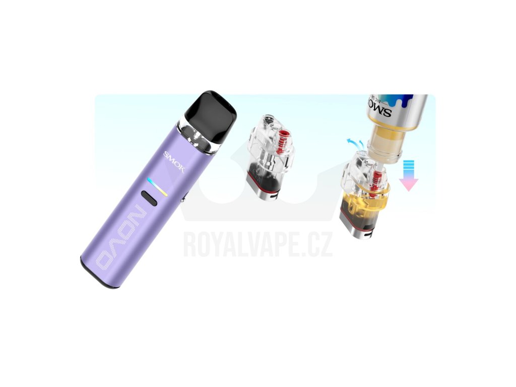 Nová řada vyměnitelných cartridgí NOVO Pod SLR se může pochlubit inovativním plnícím otvorem s uzavírací membránovou pružinkou, který je ukrytý pod horním vylamovacím náustkem. Jednoduše zatlačíte na plnící otvor kapátkem lahvičky a naplníte cartridge e-liquidem. Po naplnění se otvor automaticky opět uzavře, což pomáhá snížit pravděpodobnost protečení e-liquidu.