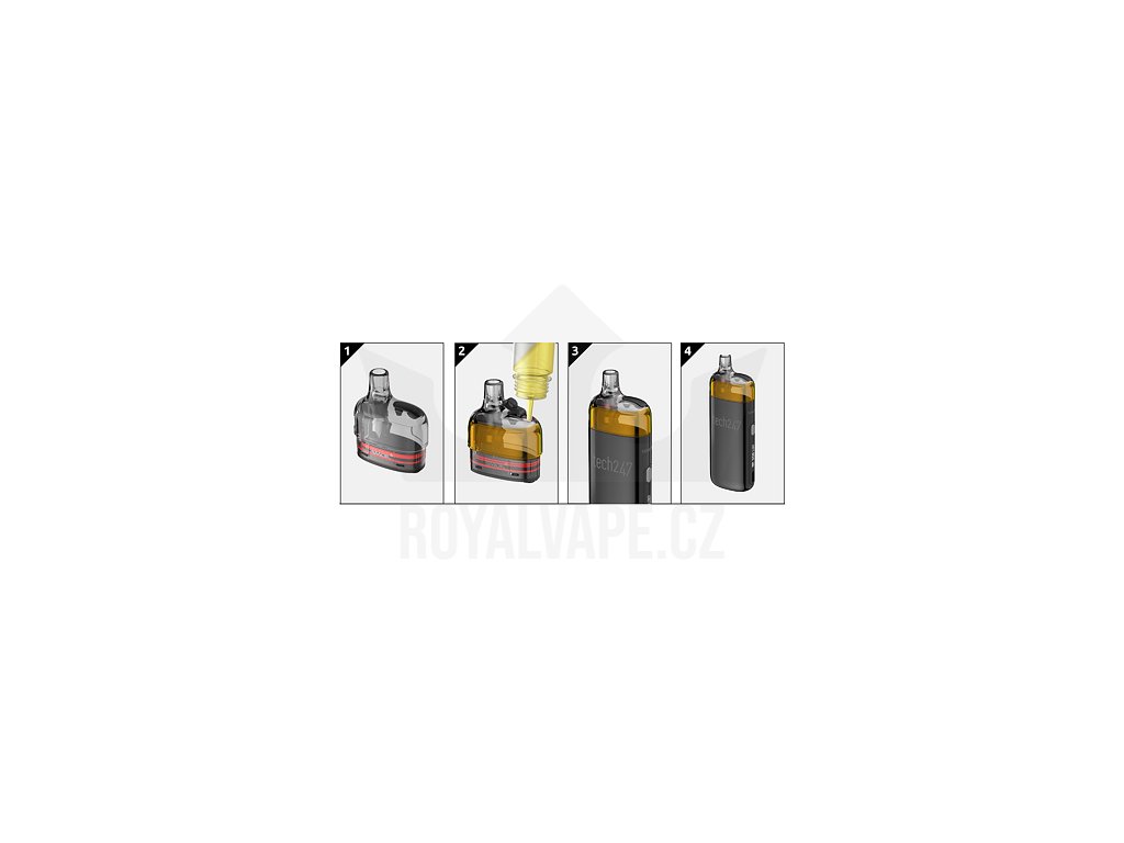 Už žádné starosti s pracným odpojováním cartridge pro potřeby naplnění. U modelu Tech247 budete moci cartridge plnit přímo na těle baterie bez jejího odpojování. V horní části cartridge se nachází praktická silikonová záslepka, stačí ji jen odklopit a začít plnit. I přes velký objem cartridge 4ml ji zvládnete doplnit doslova za pár vteřin.
