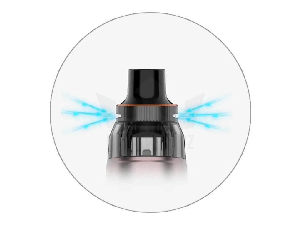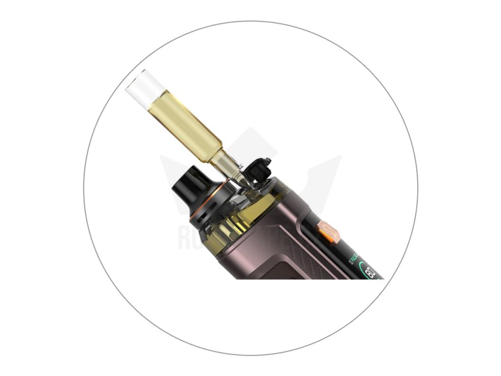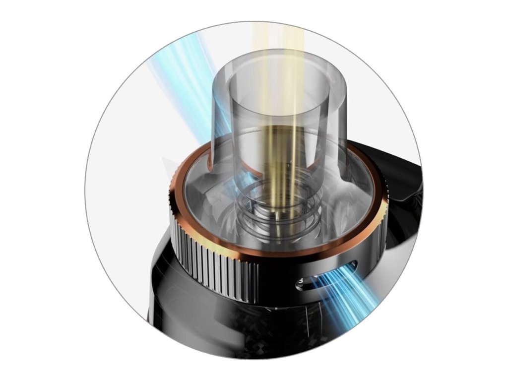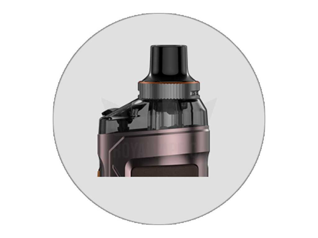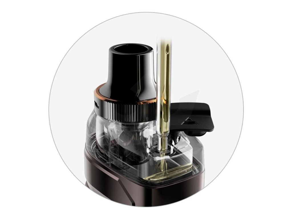 Ve vrchní části zařízení najdete novou cartridge Vaporesso Armour G Series s obrovským objemem. Hravě do ní doplníte až 5ml e-liquidu. S tímto slušným zásobníkem se můžete těšit na dlouhé hodiny intenzivního odpařování s minimem doplňování. A právě samotné plnění je vymyšleno u cartridge velmi intuitivně. Nachází se v horní části a tvoří ho pouze praktická silikonová záslepka. Do plné kapacity tak zvládnete cartridge naplnit čistě a rychle, doslova za pár vteřin.