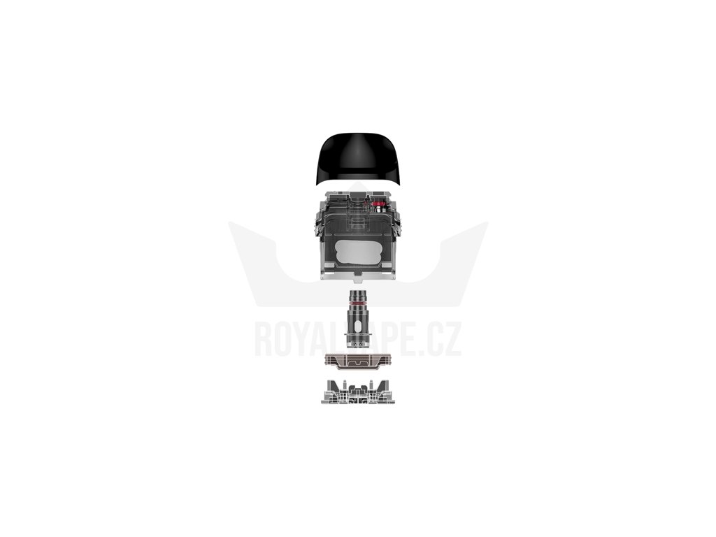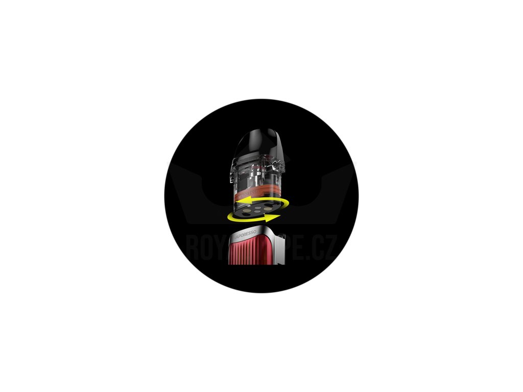 Součástí základního balení jsou dvě nové cartridge ze série Vaporesso LUXE Q. Tyto cartridge nabídnou pečlivě navrženou konstrukci s technologií SSS Leak-Resistant, výborné podání chuti, objem 2 ml a integrovaná tělíska s mesh pletivem. První cartridge disponuje odporem 0,6 ohm a je vhodná pro vzdušnější potah. Druhá cartridge nabídne odpor 1,0 ohm a je ideální pro utažené potahování a pro užívání nikotinových solí. Zařízení je zpětně kompatibilní také s první generací cartridgí LUXE Q.