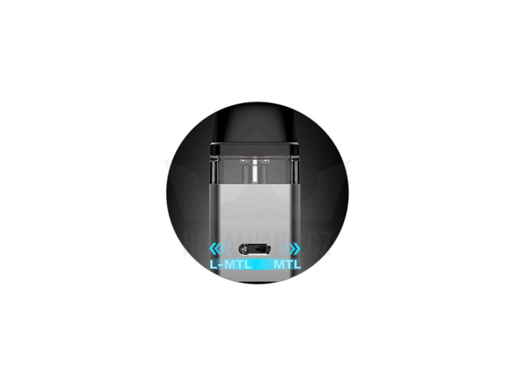 V zadní části se nachází přepracovaný a vylepšený airflow systém. Najdete zde speciální posuvník, jehož posouváním do určitého směru ovlivníte výslednou tuhost potahu. Na výběr tak máte mezi volnějším a utaženějším MTL potahem. Tato regulace umožňuje naprostou kontrolu nad přísunem vzduchu do cartridge, výslednou tuhost potahu si tak přizpůsobíte přesně svým představám.
