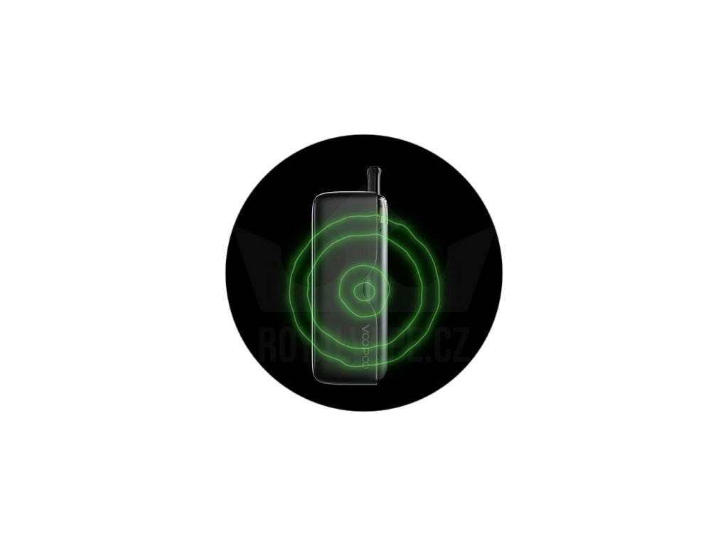 VooPoo Doric Galaxy Pod disponuje různými indikacemi stavu baterie, přidává k nim však ještě praktickou vibrační odezvu. LED indikace stavu baterie uvnitř e-cigarety se nachází přímo na e-cigaretě a stav baterie uvnitř pouzdra je možné sledovat na panelu s diodami na vnější straně pouzdra. Pokud však nebudete chtít tyto diody hlídat, bude vás o stavu baterie informovat e-cigareta také mírným zavibrováním, rozhodně vám už neunikne žádná informace.