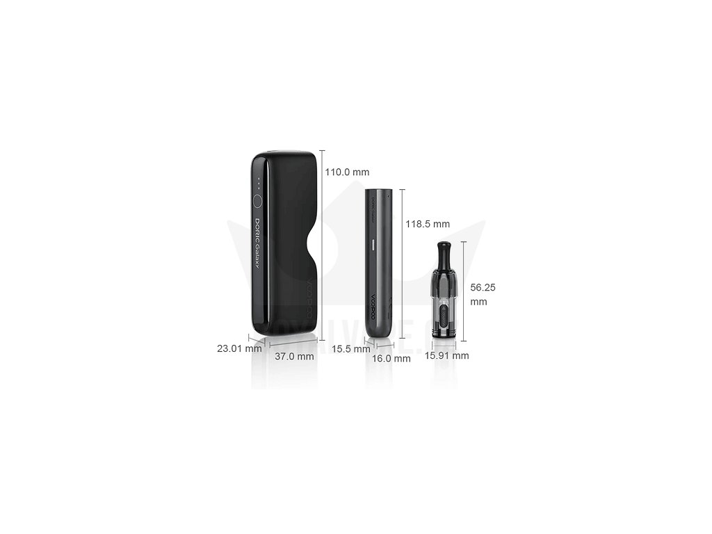 VooPoo Doric Galaxy PCC je kompletní souprava kompaktní e-cigarety typu pen-style a dobíjecího pouzdra s vlastní přídavnou baterií. V těle e-cigarety se nachází tradiční integrovaná baterie s kapacitou 500 mAh, k té se přidává také integrovaná baterie uvnitř pouzdra s kapacitou 1800 mAh. Po spojení obou těchto součástí získáte elegantní a moderní e-cigaretu s obrovskou výdrží a jedinečným designem.