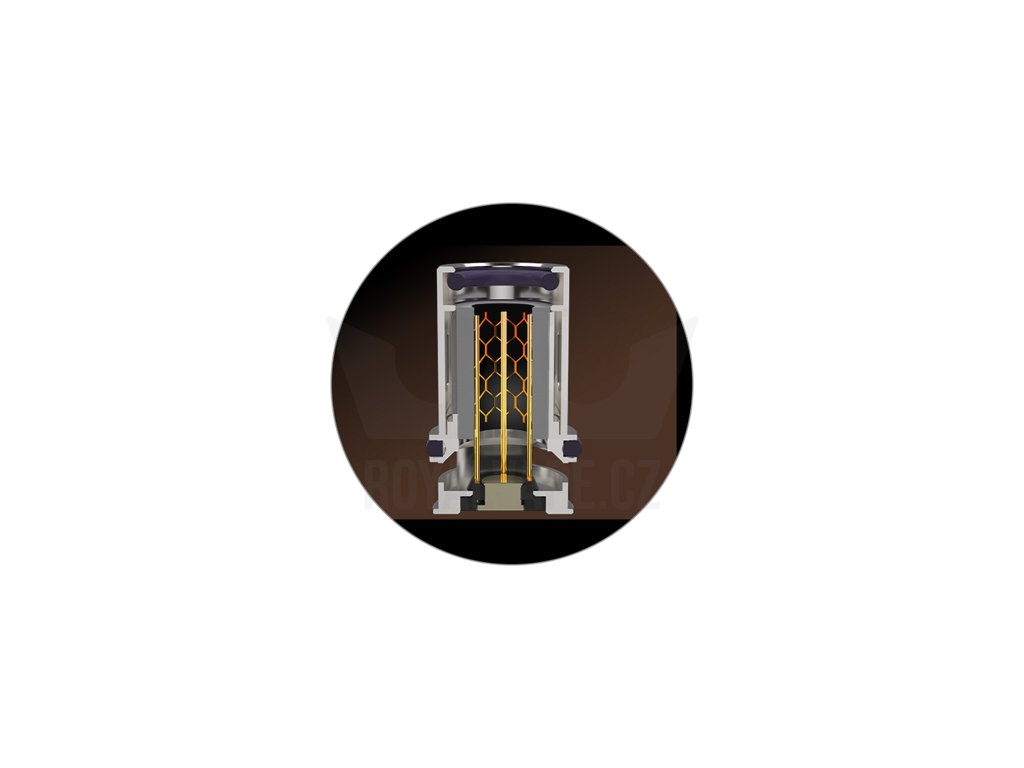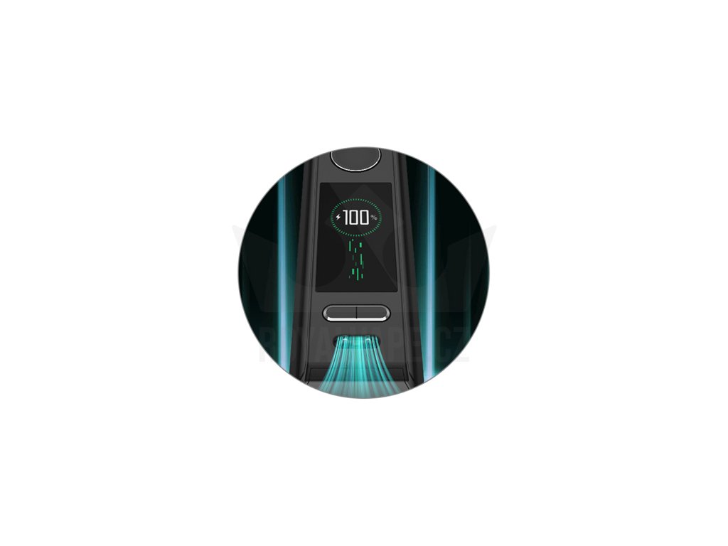 Uvnitř těla na vás čeká integrovaná baterie s obrovskou kapacitou 2550 mAh, která zajistí nejen hladký chod a plynulý provoz, ale také rychlý náběh žhavení a stabilní výkon. Díky velké kapacitě baterie se můžete rovněž těšit na mnohahodinové intenzivní používání bez potřeby dalšího nabíjení. V případě nutnosti pak postačí kdykoliv připojit USB-C kabel ke konektoru v přední části pro rychlé a efektivní dobití baterie.