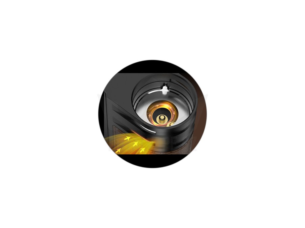 Pokud si rádi upravujete tuhost potahu během používání, tak vás jistě potěší intuitivní systém nastavení airflow. V boční části u kontaktu pro vložení cartridge se nachází napevno nainstalované otvory pro přívod vzduchu, po nasazení cartridge na tělo postačí cartridgí otáčet, čímž ovlivníte výsledný přísun vzduchu do cartridge během potahování a můžete si tak pohotově regulovat výslednou tuhost potahu.