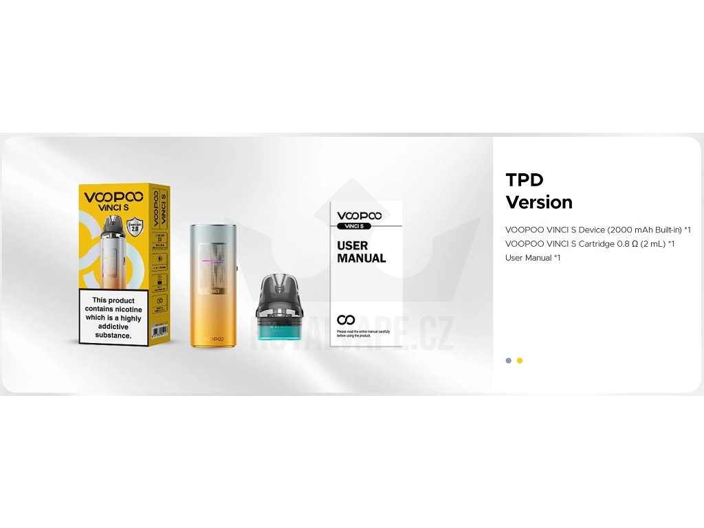 - 1x Tělo VOOPOO Vinci S (integrovaná baterie 2000mAh)