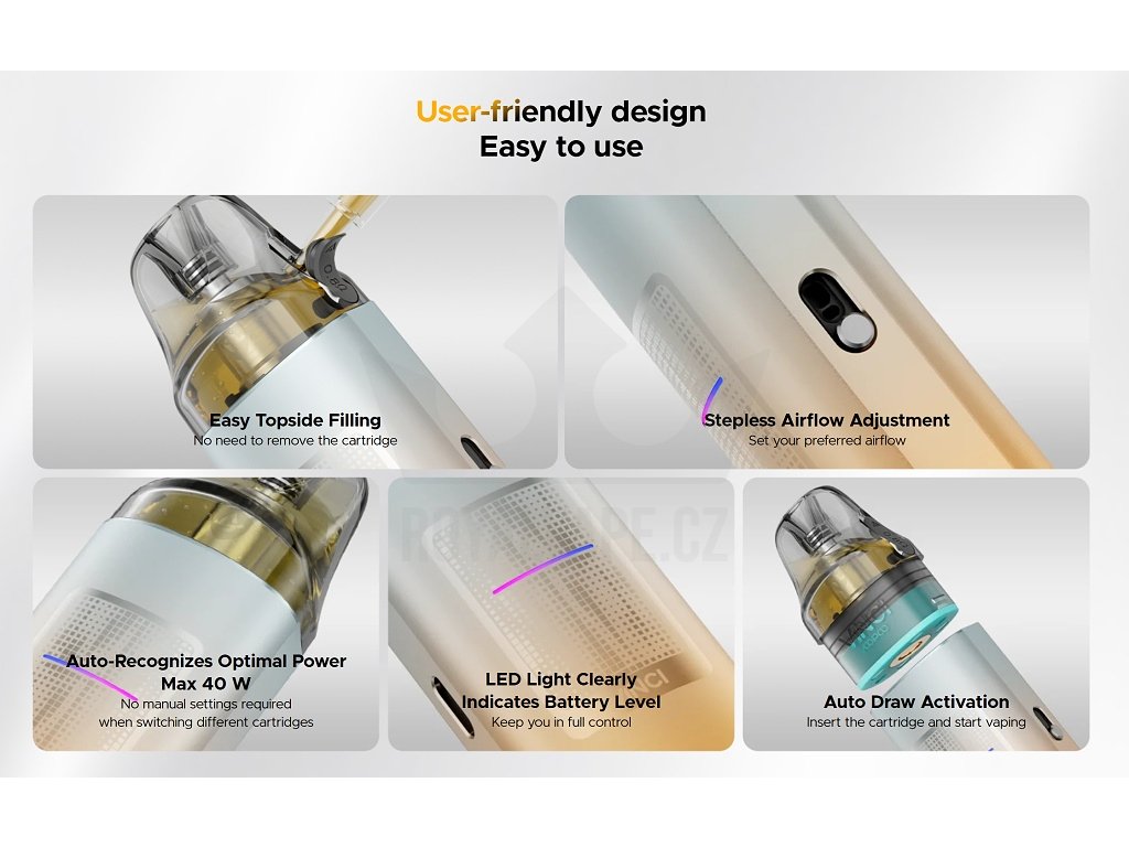 - Automatické vapování bez tlačítek