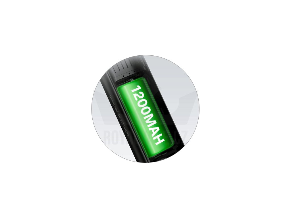 Uvnitř těla se nachází integrovaná baterie s obrovskou kapacitou 1200 mAh pro dlouhé hodiny nerušeného vapování. V případě potřeby nabití pak stačí kdykoliv připojit rychlý USB-C kabel a baterii dobít proudem až 1 A. Integrovaná baterie zajistí také hladký chod zařízení a efektivně rychlý náběh žhavení.