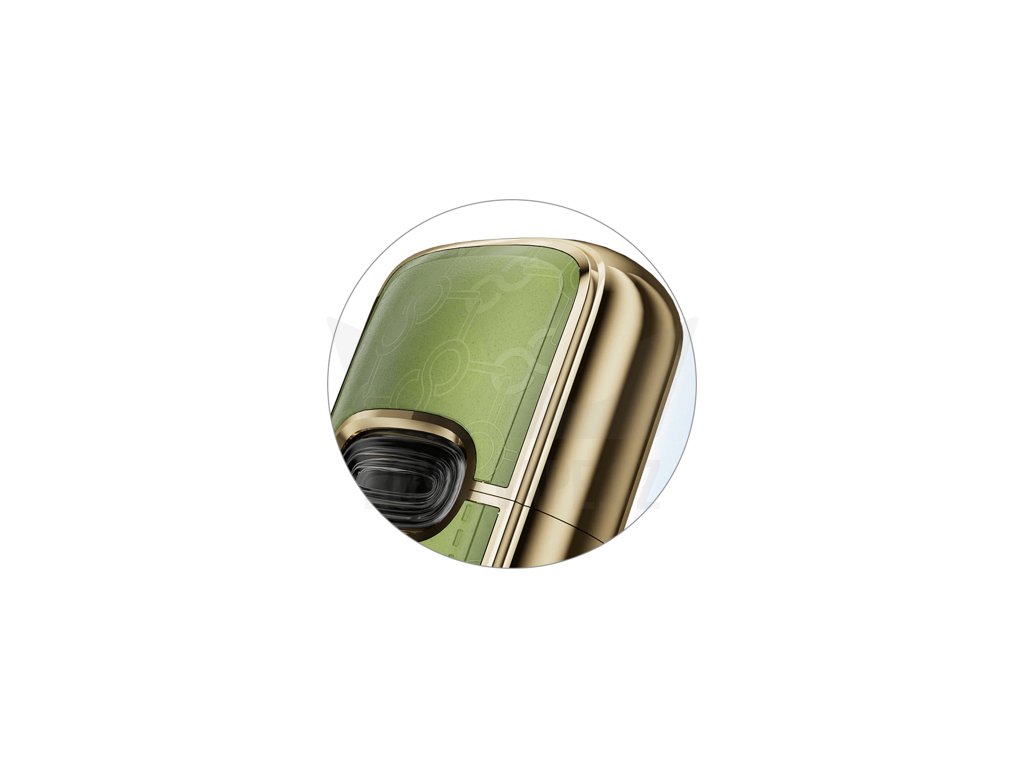 VooPoo VMATE E Pod Kit je nádherně zpracovaná a stylová e-cigareta, která přichází na scénu hned v šesti barvách. Tělo je vyrobeno z kombinace zinkové slitiny a kůže, na výběr budete mít ze tří konvenčních barev s šedou konstrukcí, nebo tři moderní a luxusní barvy s pozlacenou konstrukcí. Rozměry e-cigarety činí krásných 99,5 x 30,5 x 17 mm, díky čemuž se bude příjemně držet v ruce při každodenním používání.