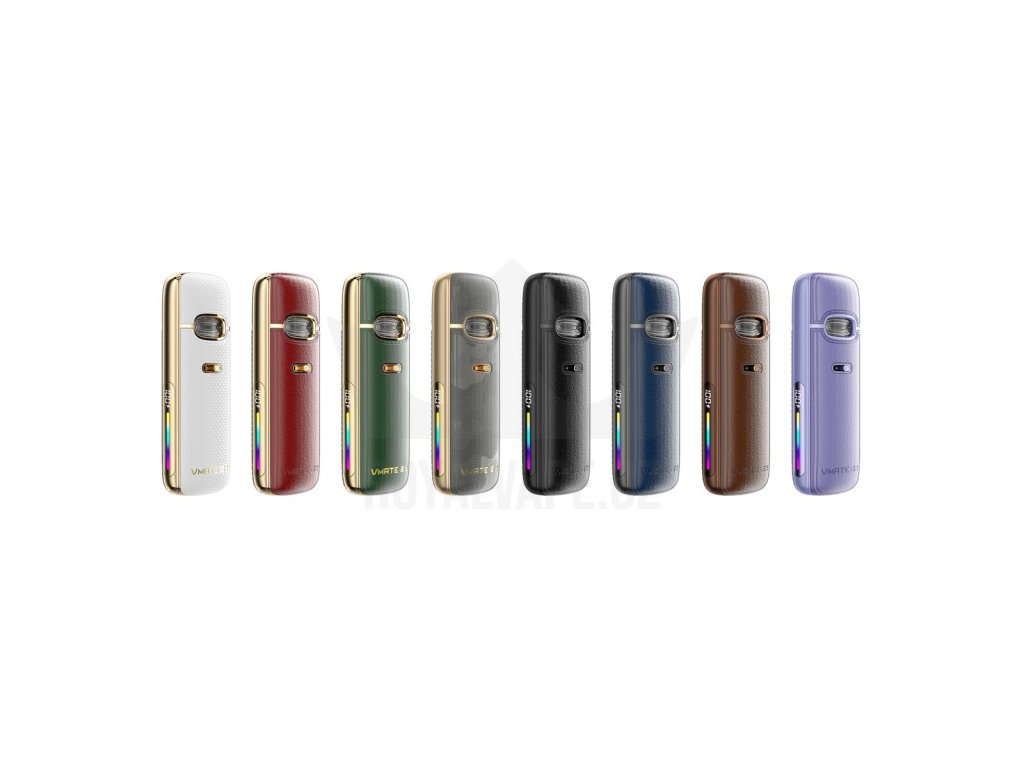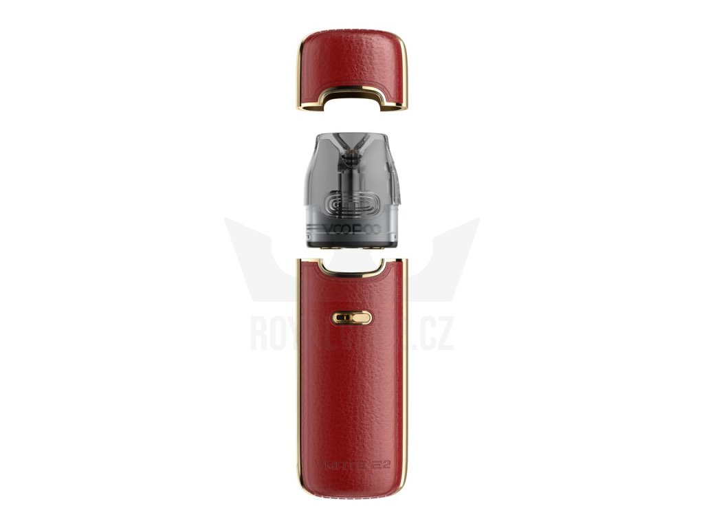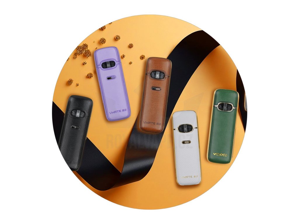 Ikonický design elektronické cigarety VooPoo Vmate E přenáší výrobce VooPoo také do druhé generace s názvem Vmate E2, nově však nabídne řadu vylepšení pro ještě větší komfort při vapování a pro ultimátní požitek z potahu. Krásný panel z ekokůže se nyní nachází na obou panelech zařízení, design je celkově ještě odladěnější, zaoblenější a příjemněji se používá. Díky novým cartridgím Vmate V3 Top Fill s delší životností, výraznějším podáním chuti a skvělou kapacitou si můžete užívat plnohodnotný vaping bez kompromisů. A s větší kapacitou integrované baterie, která se dostala až na 1500mAh nabídne možnost intenzivnějšího potahování s mnohem delší dobou provozu na jedno nabití. VooPoo Vmate E2 Pod Kit je opravdová stylovka.