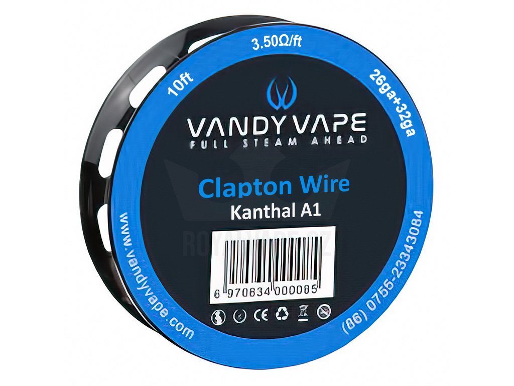 Samostatný Clapton odporový drát vyrobený z Kanthalu A1. Odpor 3,50Ω/ft (30cm), výrobce Vandy Vape, určený k namotávání vlastních spirálek.